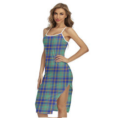 - Spaghetti straps, cross back tie, side split