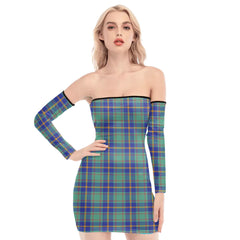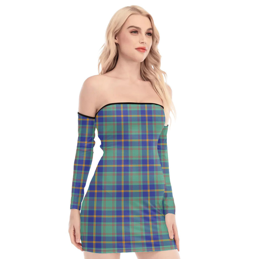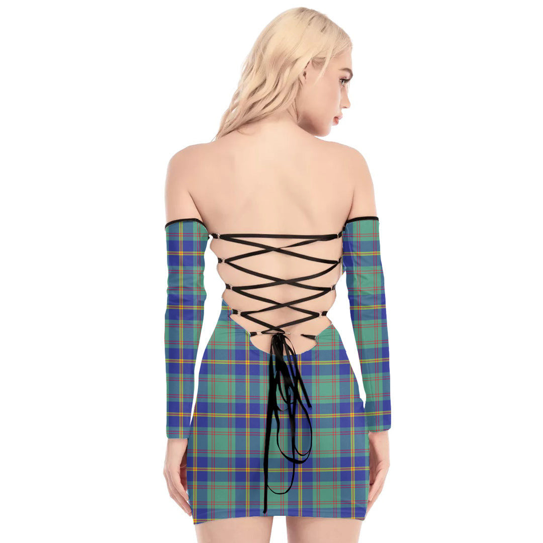 US Marine Tartan Plaid Off-Shoulder Back Lace-Up Dress